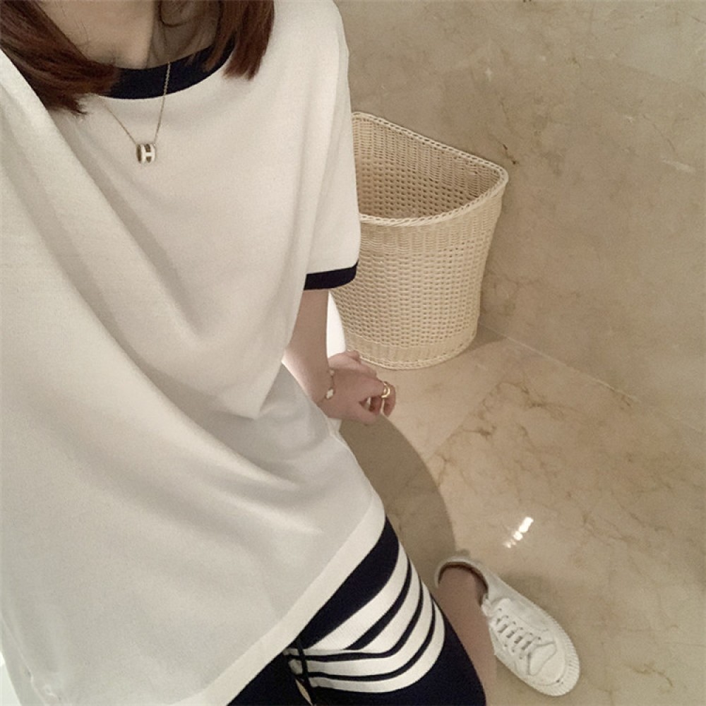 Spring and summer new tb short-sleeved T-shirt female students all-match loose and thin fashion hit color round neck top